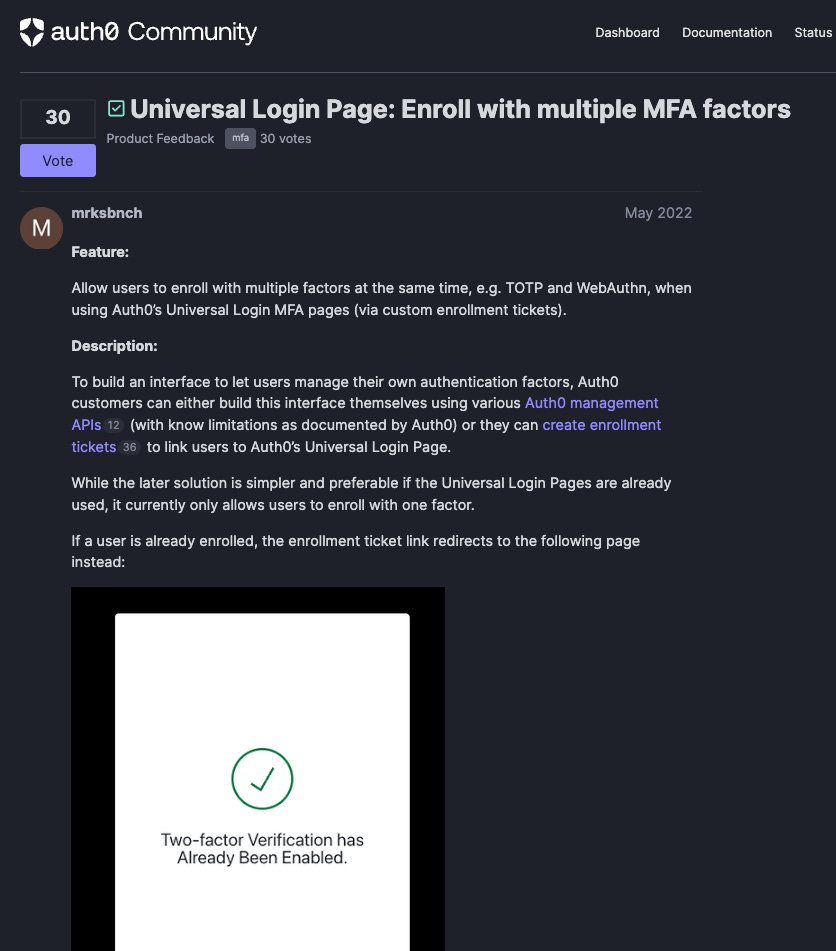 In the early days at Auth0, product feedback came from everywhere - and therefore, from nowhere. Customers shared thoughts with their account contacts, some filled out a basic feedback form on a separate landing page, and developers could always open GitHub issues or PRs. But the form experience, in particular, was poor: it left users with nothing more than a generic confirmation message. For developers, that’s the worst possible way to handle feedback.