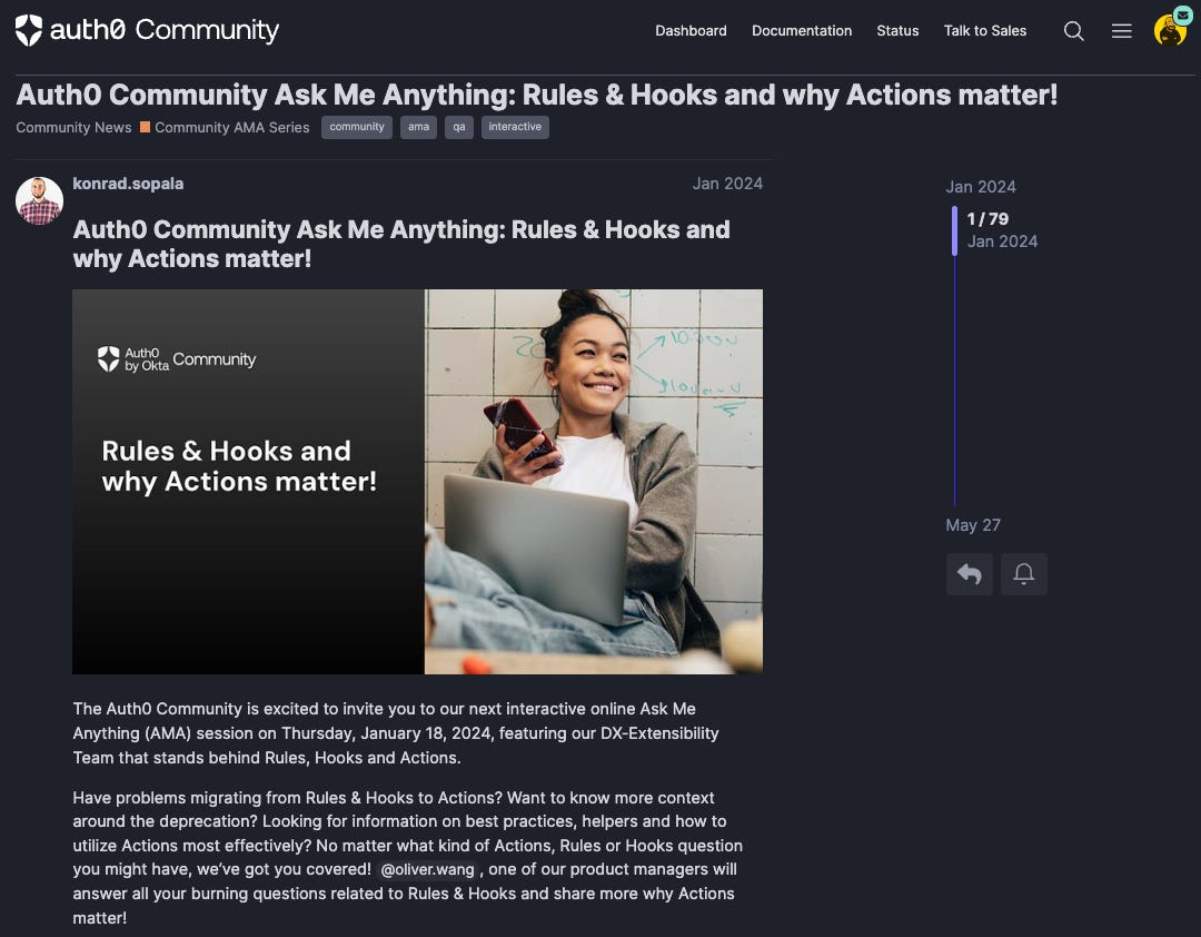 And then there’s another segment: developers who use your product regularly but aren’t yet deeply involved in the community. For them, direct access to your engineering team can be transformative. Hosting AMA sessions with company leaders or product engineers within your platform delivers outsized value. The volume of questions you’ll receive upfront may surprise you - but it also gives you a ready-made roadmap for future AMA topics. Whether live-streamed or run as a written Q&A. The format should adapt to what resonates most with your community.