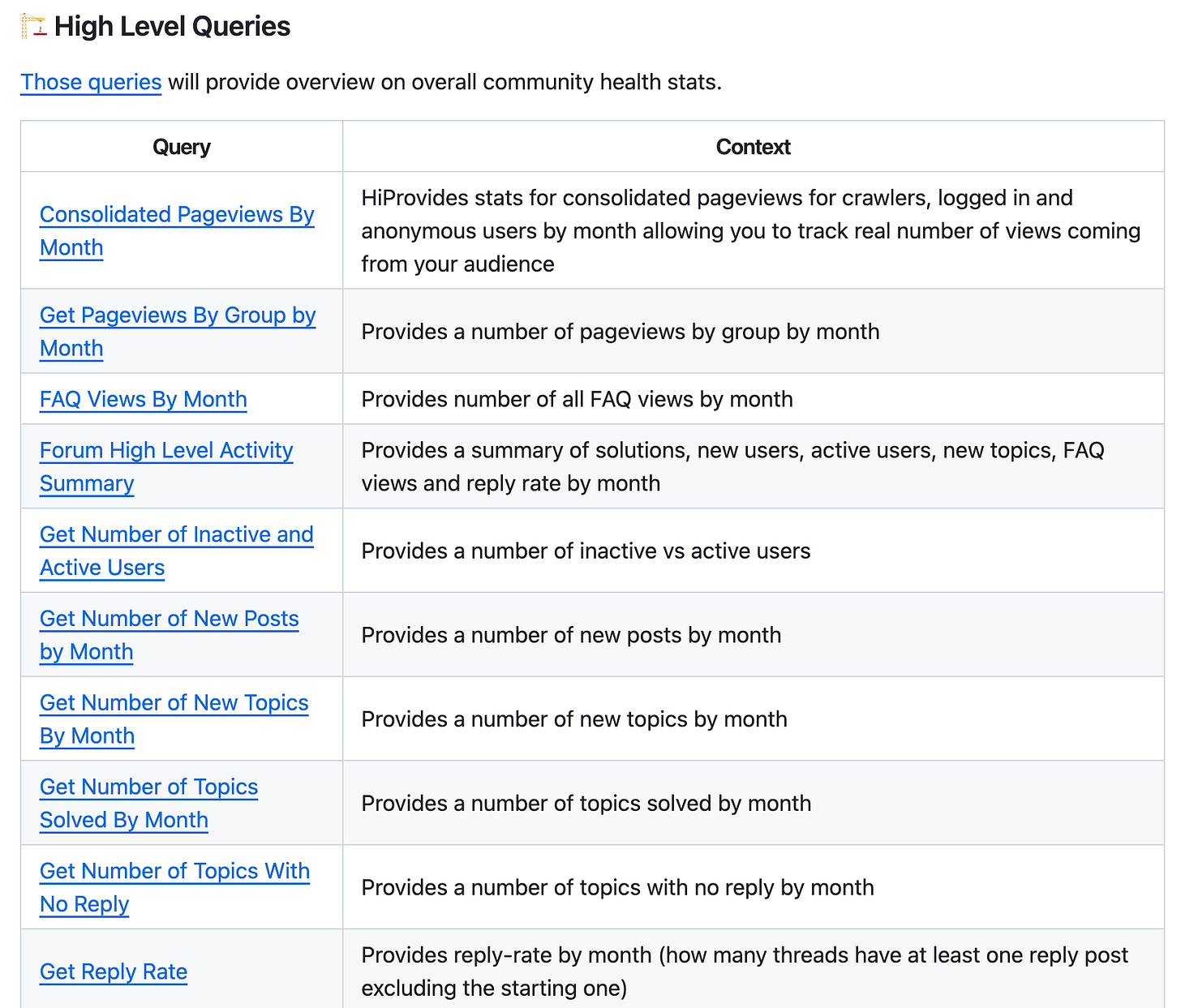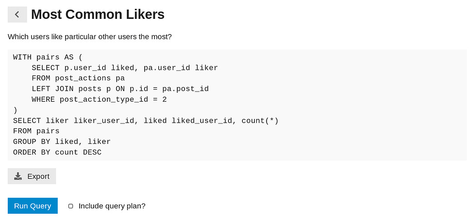 It is basically a Discourse plugin for running SQL queries against your database, allowing for instant stats reporting. Those queries can be triggered manually via admin dashboard by your platform admin, or you can even build an automation and run a set of queries through an API from an external app. You basically turn on the plugin through your admin plugins page and then you can start creating them from scratch in the built-in editor or import from a json file. Just like that: